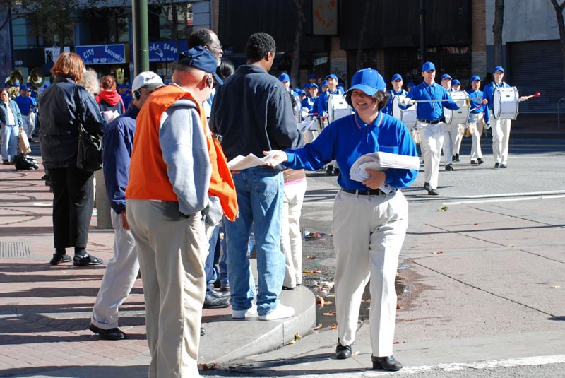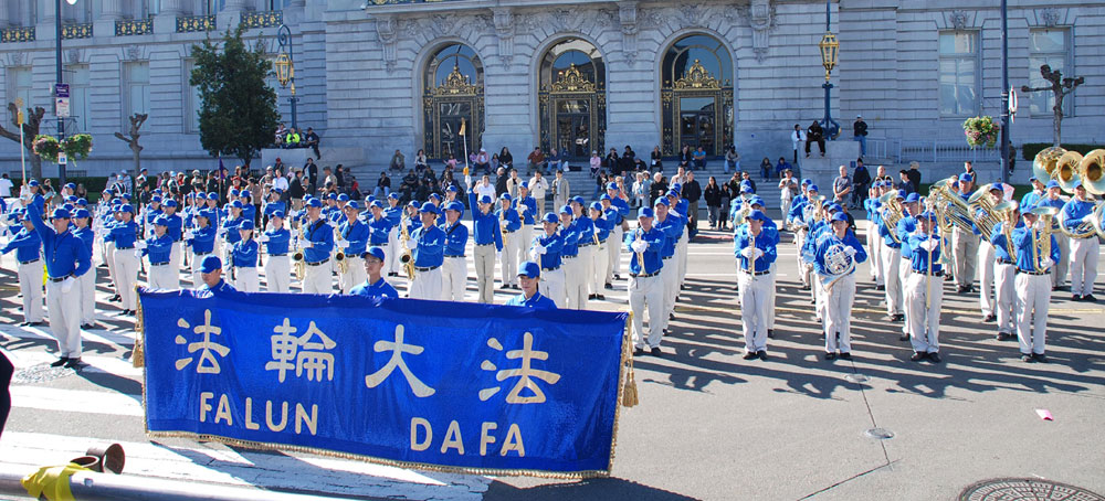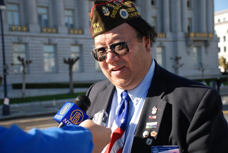 老兵节游行的总指挥黄国仁表示:今天有110个队伍参加游行。他非常高兴法轮功的队伍能够参加今天的游行。老兵节游行是旧金山市政府赞助的,我们欢迎所有的团体参加老兵节游行。美国军人就是为了公民的权利而战。