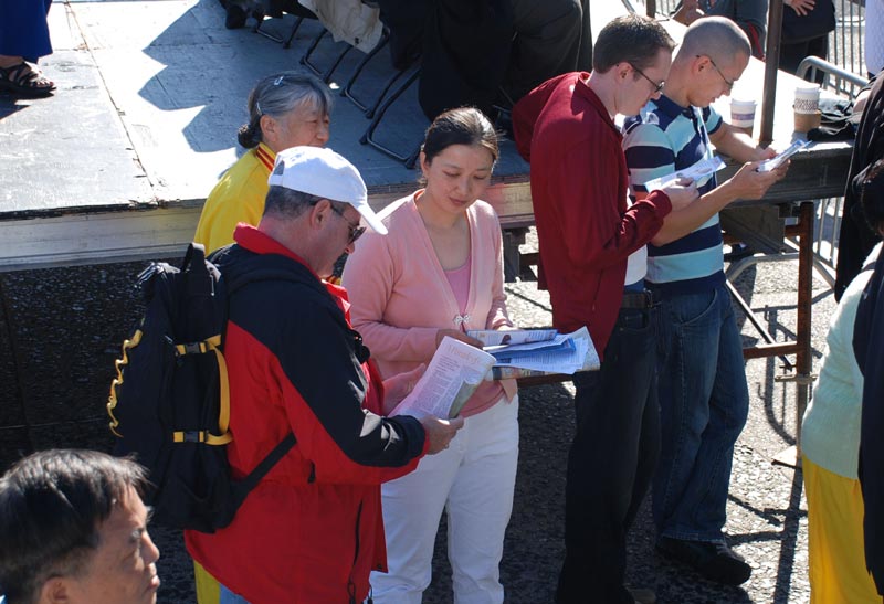 旧金山居民Erin 看到法轮功天国乐团的表演后表示,天国乐团的演奏很精彩。她认为美国政府应该利用中共举办奥运会的机会,向中共施加压力,以改善中国的人权。在全球范围内应形成对中共的压力。