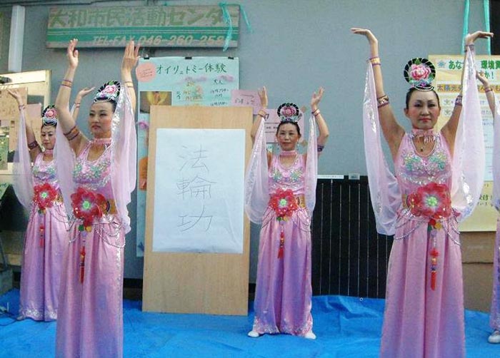 【明慧网二零零七年十一月十三日】二零零七年十月三日、四日,日本法轮功学员参加了神奈川县大和市市民活动中心市民交流集会,向当地民众展示了中国传统修炼文化。这是学员们第三年参加该活动,去年明慧学校孩子们的表演给主办单位留下了深刻印象。今年法轮功学员们以中国古典舞表演、小提琴演奏、莲花折纸制作及功法演示的方式展现了法轮大法修炼者的风貌。优美的“莲花舞”以及“扇子舞”让人耳目一新,观看者纷纷称赞舞蹈太美了,而祥和舒缓的法轮功功法演示更是吸引了人们的关注。