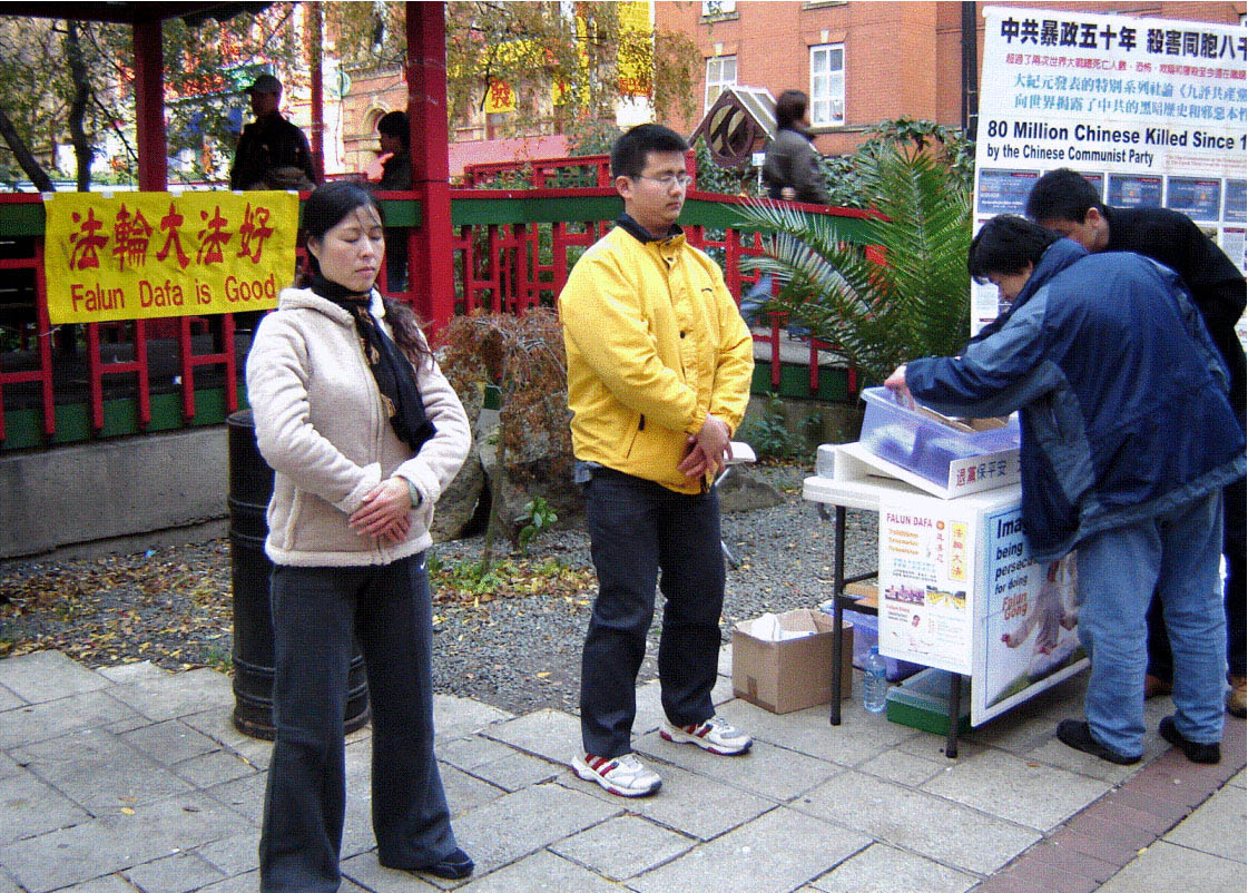 ![]() 法轮功学员在曼彻斯特唐人街炼功、讲真相 |