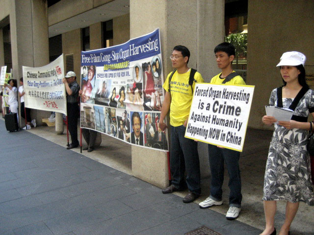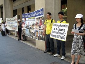 ![]() 法轮功学员在澳洲司法部办公楼前举行新闻发布会 |
