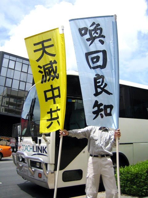 ![]() 布里斯本中国城街头展开的声援三退横幅 |
