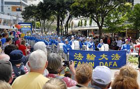 游行从下午二时开始,游行队伍沿惠灵顿最繁华的三条商业街行进。道路两旁站满了观看游行的人们。当法轮功学员的天国乐团、花车出现在游行队伍中时,人们发出了惊叹和欢呼,用掌声表达内心的感受。