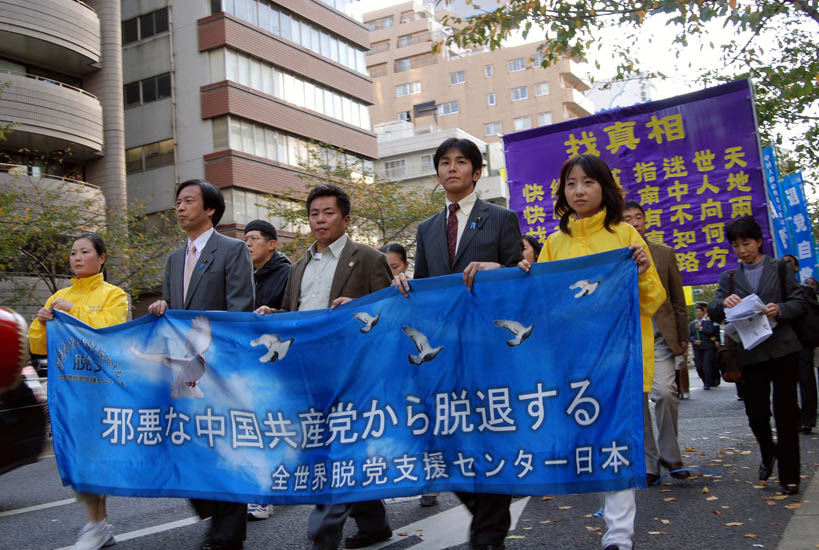 东京的退党服务中心负责人佐藤国男介绍:从大纪元推出揭露中国共产党本质的《九评共产党》一书以后,三退(退出共产党、共青团、少先队)高潮持续至今,现已有二千九百万人声明退出共产党及相关组织。三年以来,退党服务中心在东京举办的声援退党大游行二十多次了,游行不但使很多日本人对中国共产党的邪恶本质有了一些认识,还让许多中国人清醒并退出中共。