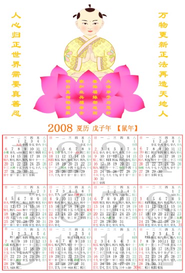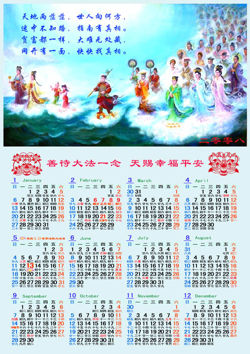 二零零八年年历三款:世界需要真善忍(日历已更新)二零零八年年历一款:找真相二零零八年年历一款:恭贺新年二零零八年年历两款