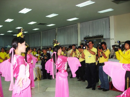 十一月五日下午,泰国法轮功学员来到诗里叻医院,带来了美好的祝福并表演了仙女舞。优美的舞蹈和修炼者的祥和吸引了全场视线,在场的众多媒体不停的捕捉镜头。法轮功学员的精彩表演获得了热烈的掌声。
