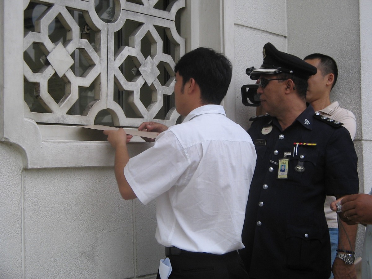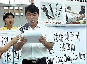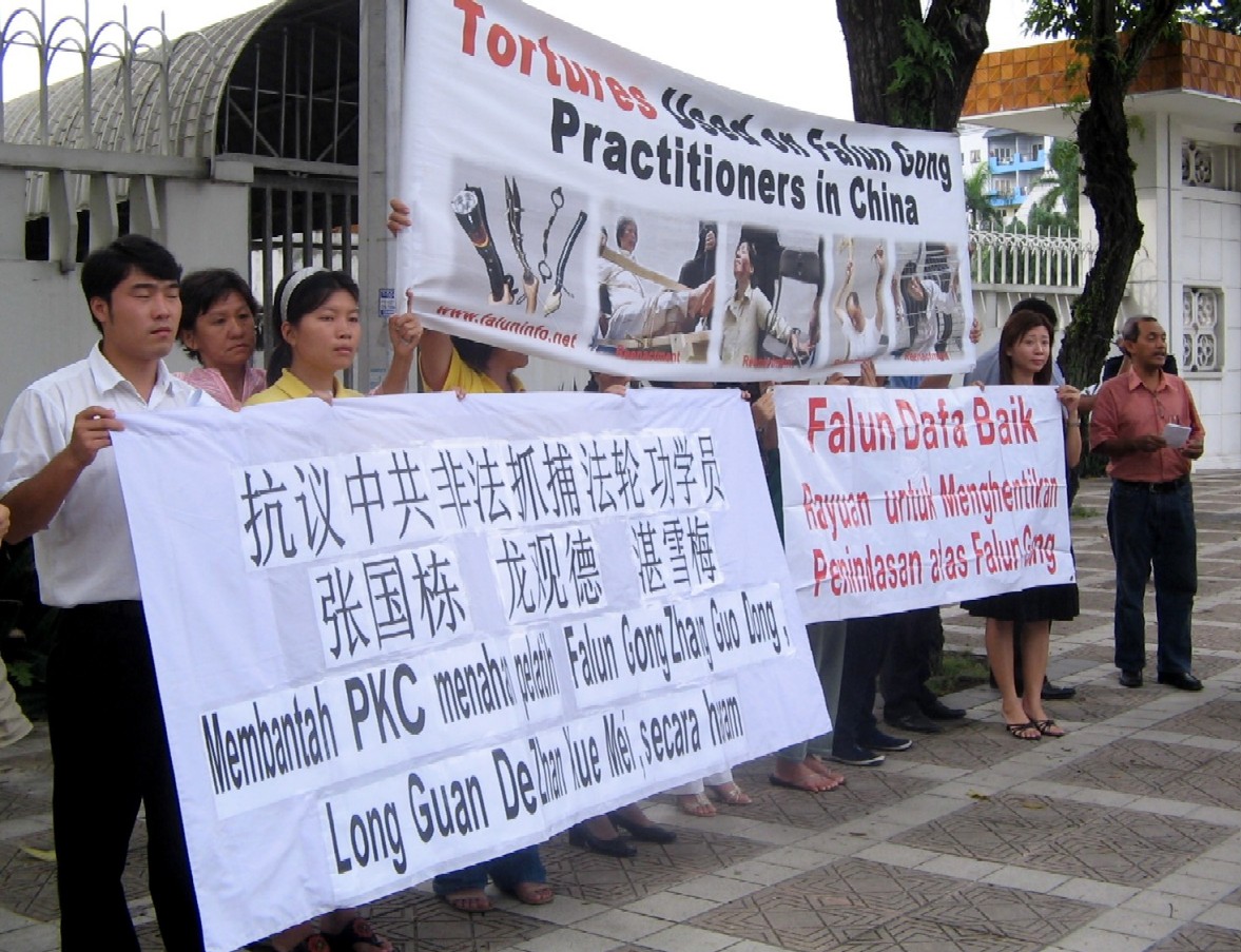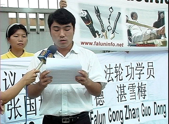 目前身在马来西亚的张子建在中使馆前宣读抗议声明:「我呼吁中国有良知的人们勇敢的站出来营救我们被中共迫害的同胞,包括法轮功朋友!强烈要求中共当局立即释放张国栋等法轮功学员,无条件的恢复他们的自由!同时我也呼吁海内外正义人士关注张国栋等法轮功朋友,关注中国大陆人权状况进一步恶化的趋势!」