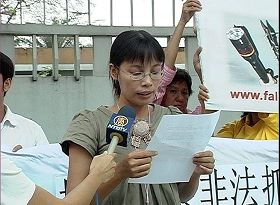 来自广东的陈劲是龙观德夫妇的朋友,她也在集会中呼吁各界协助营救这些法轮功学员,特别是长期被中共悬赏通缉的龙观德夫妇。