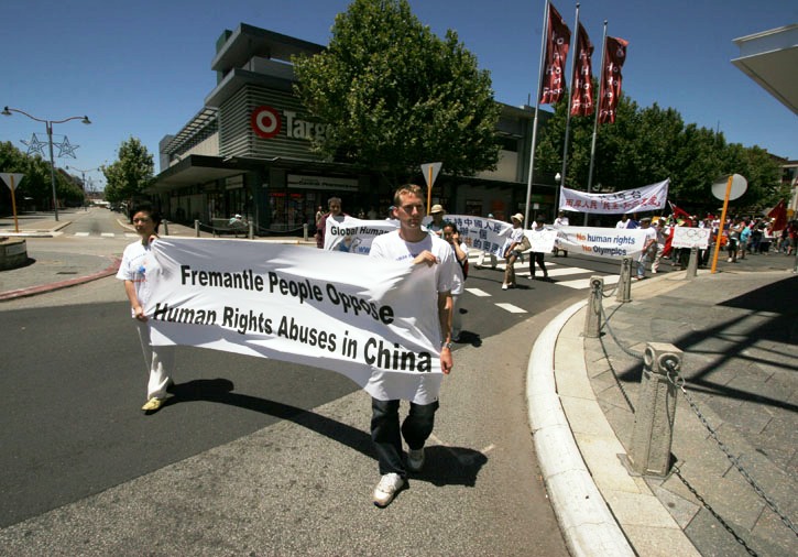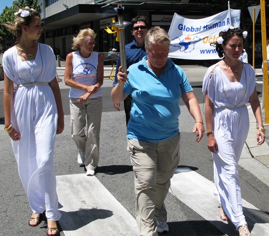 次日,人权圣火在西澳首都柏斯市中心点燃。代表西澳大学学生社团的Toby Prosin带领一群年轻人跑步把圣火带入市中心。在扮演正义女神的Ronnie女士把圣火授予前奥运选手Jan Becker女士后,接力活动就开始了。参与的团体有西藏社团、自由缅甸、拯救达尔富尔组织、绿党成员、西澳商业团体、西澳台湾社团、医生与护士团体、关怀人与动物组织以及其他各界人士。