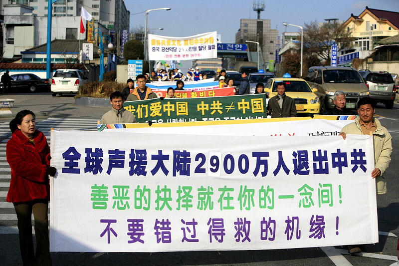![]() 韩国清南道天安市,庆祝二千九百万退出中共游行活动 |