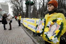 乌克兰法轮功学员中使馆前抗议迫害(图)