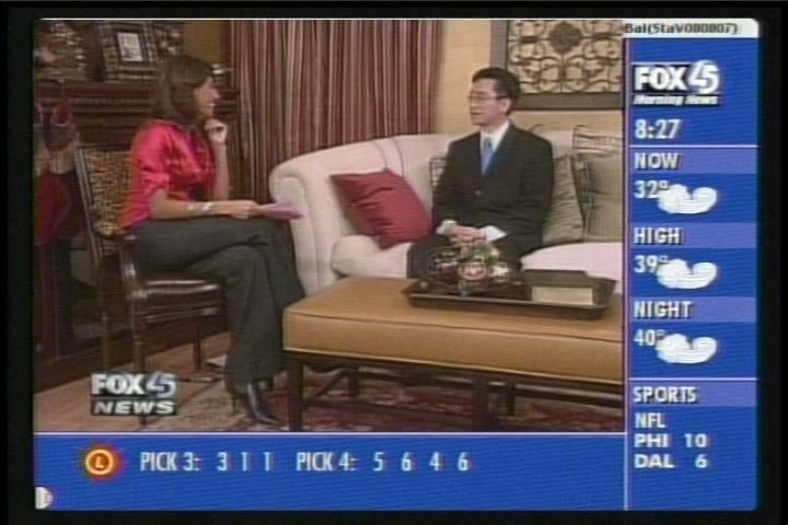 ![]() 福克斯电视台巴尔的摩分台于12月17日早间新闻节目中,特邀新唐人电视台华府分台总经理向东先生,向当地观众现场介绍新唐人圣诞晚会。 |