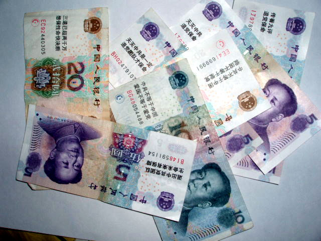![]() 自二零零五年十月开始,中国大陆许多地方的人民币上,出现三退资讯 |
