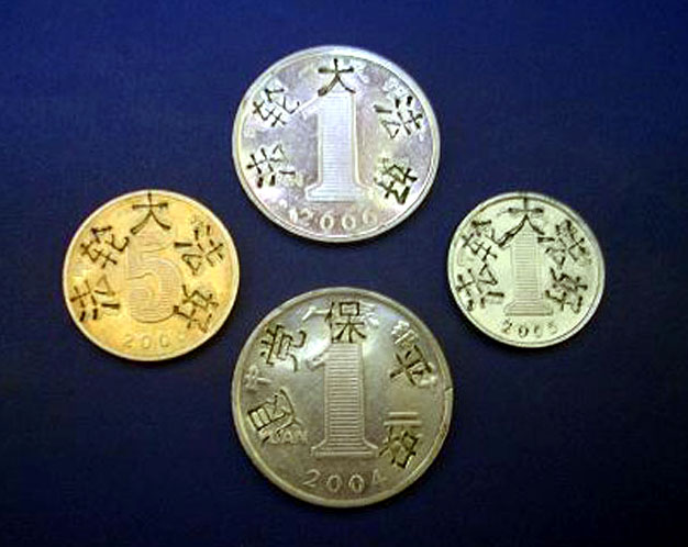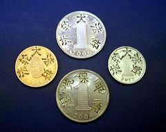 ![]() 流入社会,刻有「法轮大法好」和「退党保平安」的硬币 |