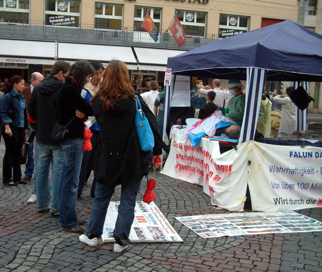 为了能尽快制止中共对法轮功学员的迫害,制止中共活体盗取法轮功学员器官的行为,全世界上百个城市的法轮功学员以模拟演示等方式揭露和抗议中共的暴行。世界各地很多民众看过模拟演示后都主动签名表示对中共的强烈谴责,很多媒体进行公开报导,不少政府官员和社会组织都作了公开谴责中共暴行的发言。