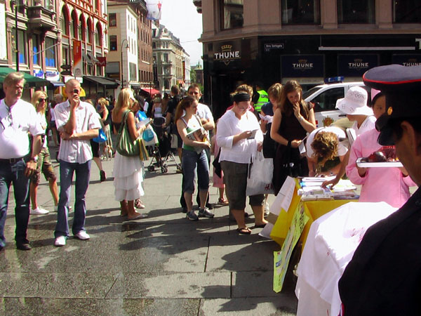 ![]() 挪威:挪威首都奥斯陆市的民众排队签名反迫害 |