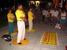 要求停止迫害法轮功的标语有:「政协常委汪兆钧呼吁停止迫害法轮功」、「恶行曝光、停止迫害、法网恢恢、善恶有报」、「中共活摘法轮功学员器官盗卖牟利」、「向伟大的法轮大法修炼者致敬」等。