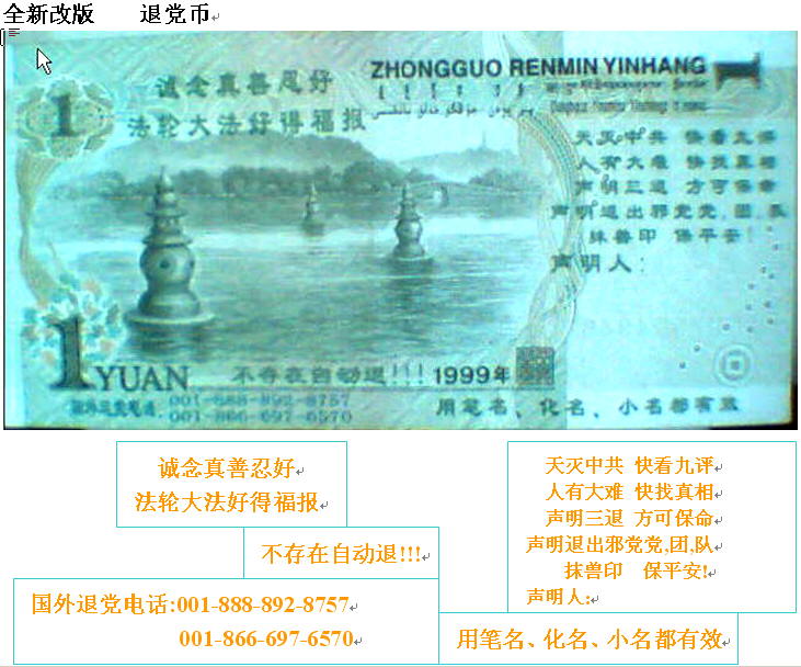 小窍门:在做三退时遇到的名单中有正体字,因平时用智能ABC的拼音打字,因此找不到这些字,同修告诉我用全拼能找到,果然有很多字都能找到。还有曝光的曝念pu而不是bao。在三退名单计算人数时,用同修建议的替换法很好。具体使用方法:在word软件中打字,每个人名后都打上顿号,包括最后一个人名也打上,打完名单后,在最后打上声明、大陆、三退的人数、××等,××是名单的第一个人名,在发稿时将“声明”等字剪切到发稿的对应栏中。打完名单后,点上面的“编辑”工具栏,在里面找到“替换”,在“查找范围”和“替换”后的框中都打上顿号“、”,然后点“全部替换”,会出现有几处被替换的对话框,有几处被替换就有多少人,记下数,按“确定”即可退出替换。此法方便、快捷。注意除人名后,全文其他处不要用顿号“、”,以免算上数。