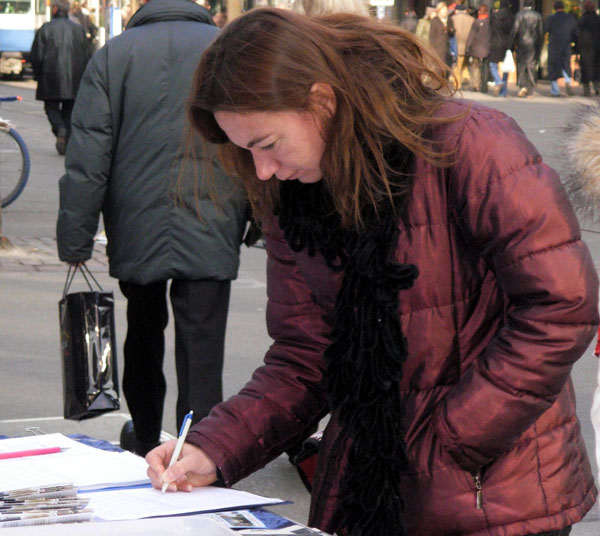 法轮功学员英格博谈到,很多人在签名时表示,他们签名是因为这场迫害太糟糕了,应该立即停止。