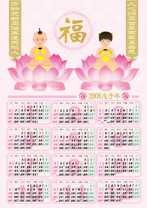 二零零八年年历:法轮大法洪传世界二零零八年年历:福