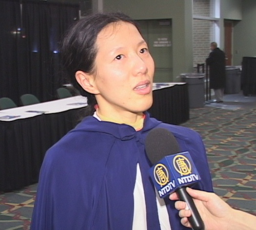 熊颖从中国大陆来,在美国居住了十几年。她说:“我在华文报纸上看到晚会的消息,而且听到有一个韩国人对这个晚会评价非常高,说尤其是在表现人和天,其实也就是人和神的交往、人对神的向往,这方面特别美,所以我就马上觉的我要来看。”