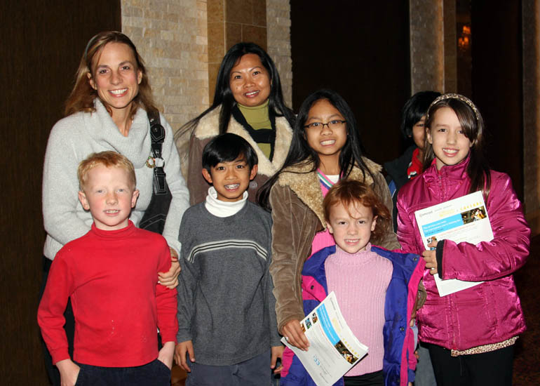 ![]() 丽莲(后排左二)和她的朋友带了六个孩子一起来观看演出。演出结束后,他们兴高采烈的走出剧院。丽莲表示,整场节目让她感到平静和快乐,尤其是打鼓的节目。 |