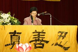 日本有十多位学员来参加此次法会。贝先生祖籍浙江,现在定居日本。贝先生说:「法轮功让我找到生命的意义,来台湾参加修炼心得法会感觉很好。一九九九年前在大陆也是相同情况,公园、学校中很多人炼功。但目前同事若是炼功,回到中国就被公安跟踪。」