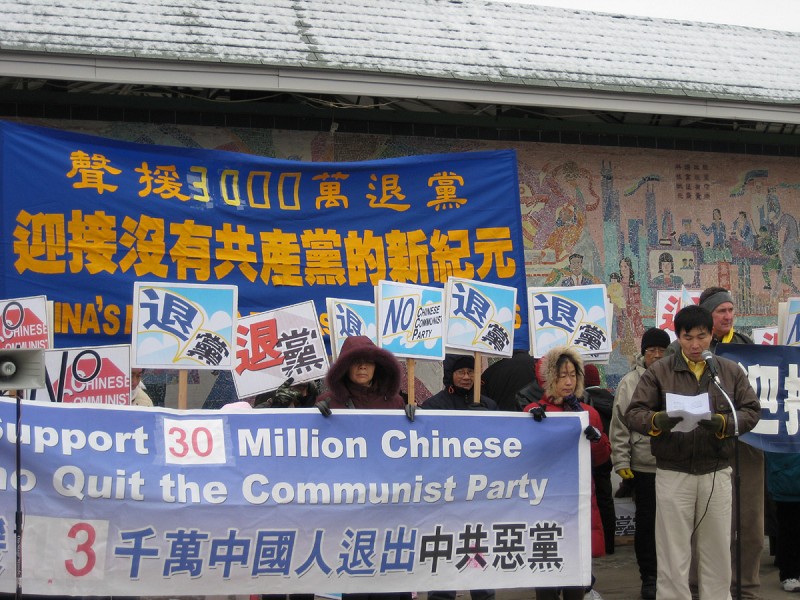 集会上,退党服务中心的代表等宣读了大纪元郑重声明,并介绍了退党大潮的近况,呼吁更多民众尽快加入“三退”大潮,共同见证这重要的历史关头。随后,与会民众在南中国城游行。