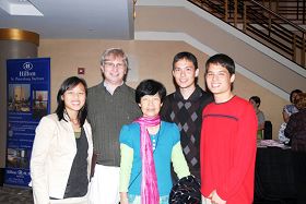 ![]() 李擎轩(右一),乔治亚工程学院的学生,在晚会中与他的家人度过了一个美好的生日 |