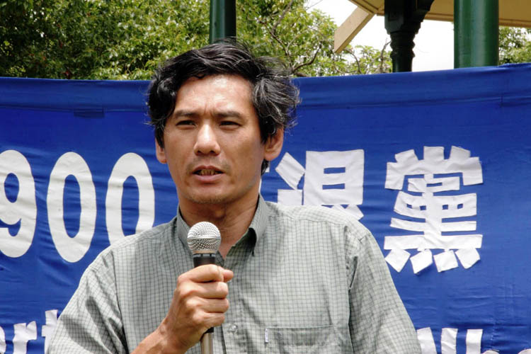 民主声援会代表张小刚说:今天我们在这里声援二千九百万中国勇士退党、团、队和纪念传《九评》三周年是非常有意义的,共产党统治的基础就两点:一是骗、二是吓;骗就是用洗脑的方式歪曲事实,让真相在人们的头脑中模糊起来,《九评》将事实真相从新还原告诉大家,从而戳穿共产党的本质;吓就是让大家不敢说真话,不敢做一些符合事实的事情。现在越来越多的人认清了共产党,越来越多的人敢于站出来说真话,在中共的统治下,现在处处都是危机,我们应当鼓励人站出来,把你所知道的黑暗面揭露出来,如果大家都这样做,那么中共一天也呆不下去。