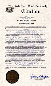 ![]() 纽约州议会嘉奖状 |