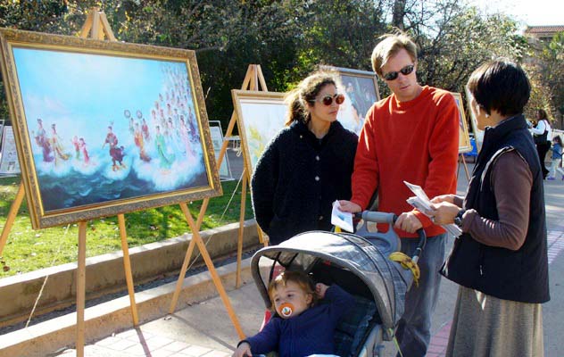 周末的巴博雅公园游人如织,前来观画的人们络绎不绝,人们被真相震撼着,看到中共对善良修炼者迫害的残酷,有人流下无声的泪水,有人询问该如何帮助,还有很多人表示对画展的支持和鼓励。