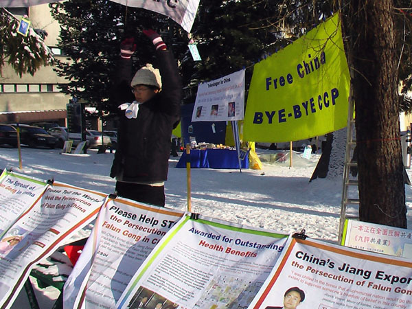 今年也不例外,零七年一月二十二日至一月二十七日,很多法轮功学员来到这里参加信息周。今年活动的主题是传九评及揭露中共活摘法轮功学员器官、牟取暴利的恶行。在为期六天的活动中,法轮功学员向路人、来参加论坛的各界人士及媒体发送了各种语言的法轮功真相材料。