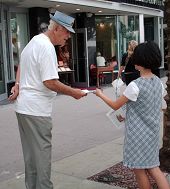 ![]() 法轮功小弟子发传单 |