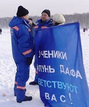 俄罗斯伊尔库茨克法轮功学员滑雪赛场讲真相(图)