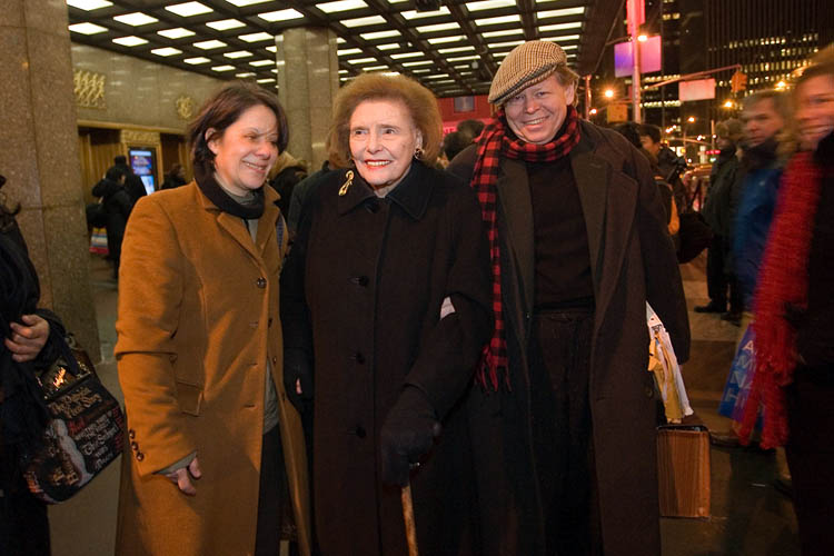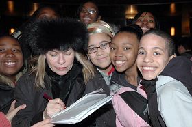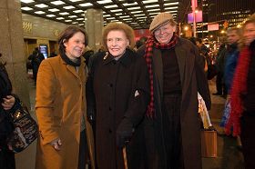 ![]() 奥斯卡和金球奖双料影后派翠莎•尼尔(中)、及纽约百老汇著名演员乔尔•威格(右)对晚会赞赏备至。 |