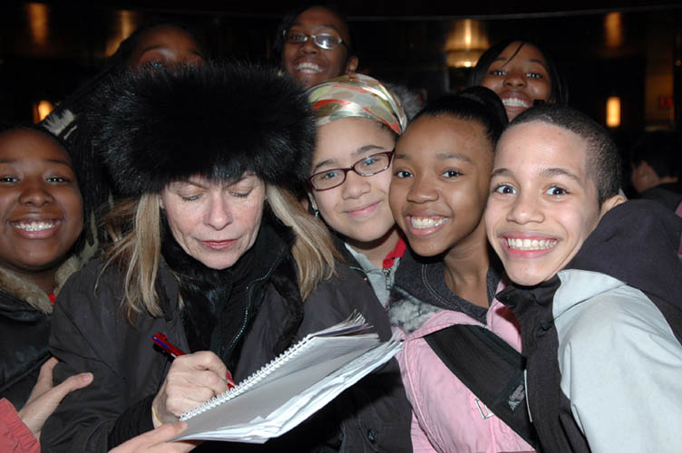 ![]() 在中学教四年级的弗朗•克兰菲尔德(Fran Kleinfeld)(中间留言者)认为:“《天安门广场请你告诉我》这首歌是对孩子们最好的教育。” |
