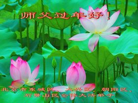 在这辞旧迎新之际,我们北京市“国家”行政机关在职和退休的大法弟子向慈悲伟大的师尊拜年,并献上我们诚挚的问候和衷心的祝福!在这值千金值万金庄严神圣的珍贵时刻,我们一定正念正行,全力实践好师尊的正法安排,“越最后越精進”,不负您“大法弟子是各地区、各民族众生得救的唯一希望”之重托,完成史前向师尊立下的同化大法、救度众生的誓约,圆满归位。向师尊合十!