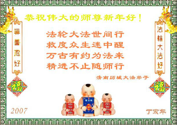 我代表济南军区的大法弟子及家人祝慈悲伟大的师尊新年快乐!