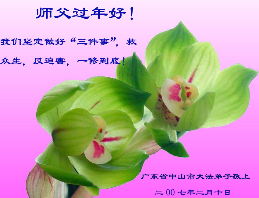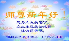 叩谢师尊慈悲洪恩!我们将不辜负师尊的期望,不辜负众生的期盼,不辜负大法对我们的慈悲救度,继续努力做好“三件事”,越最后越精進,助师正法,直到圆满功成!二零零七年二月十六日