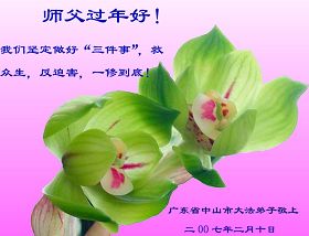 师父您好!我们纺织系统大法弟子给您拜年!恭祝师尊新年愉快!