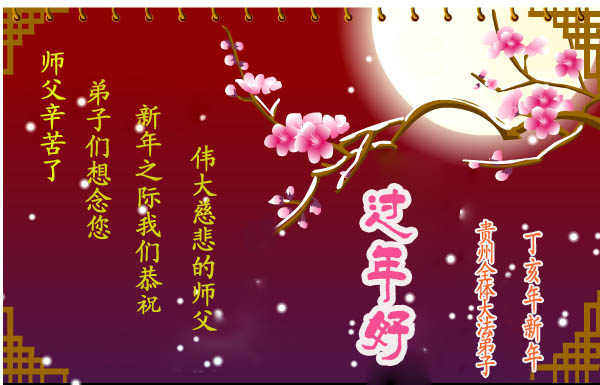 师父,您辛苦了!千言万语无法表达弟子的无限感恩之心,弟子在此含泪遥祝师尊过年好!请师父放心,弟子一定会做好!