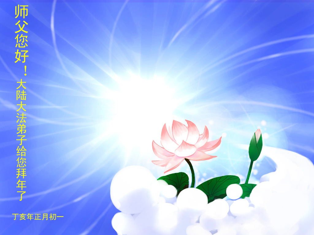 慈悲伟大的师尊,过年好!大陆全体法官大法弟子给您拜年了,恭祝师尊新春快乐,事事如意!