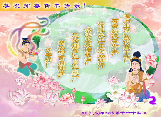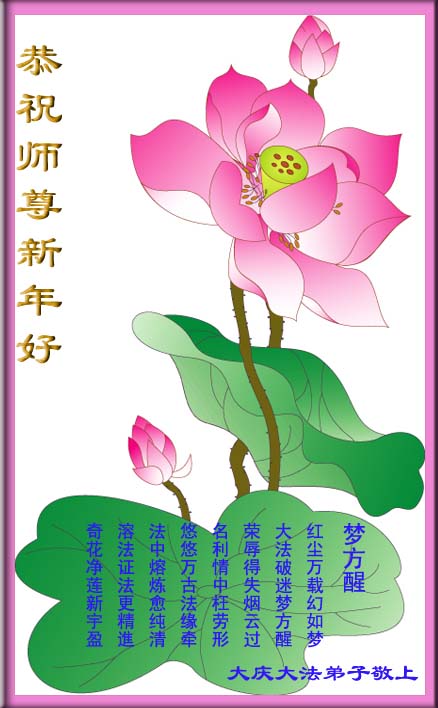 在新年即将到来之际,我们大法弟子怀着最崇敬的心情,向师父致以最诚挚的问候:敬爱的师父新年好!