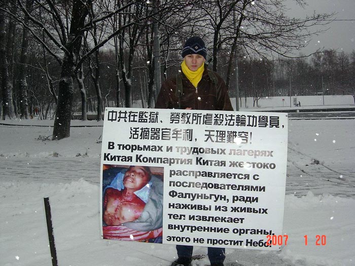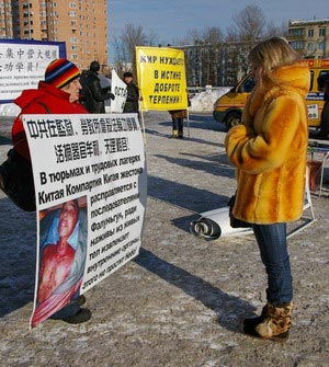 ![]() 莫斯科学员一个月来在中使馆前抗议中共活摘法轮功学员器官牟利的暴行 |