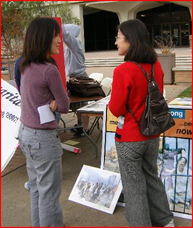 活动时间是从上午十一点到下午两点,法轮功学员以摆展板,发传单的方式讲真相。学生们表示对中共迫害法轮功不认同,谴责中共活体摘取法轮功学员器官的暴行。