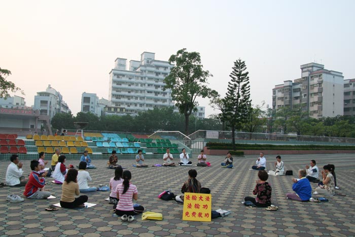 每天都把五套功法完整炼好,无论刮风下雨一直坚持下去,走过了五个多年头。因为法轮大法是宇宙大法,强调心性的提升。周末炼完功后,学员们会一起学法交流。通过学法与交流,每个学员都更加的认识这部大法。在这里炼功的学员来自各行各业,其中有一位老年学员,今年七十二岁,得法已近七年,刚开始她完全不识字,经过不断的学法,现在会看书还会背书,不但如此还会上网讲真相呢!