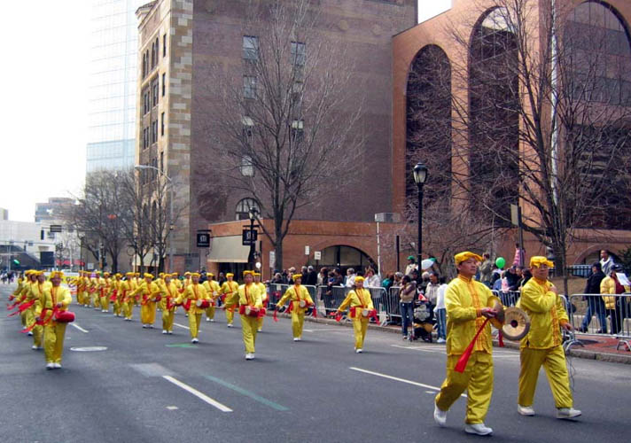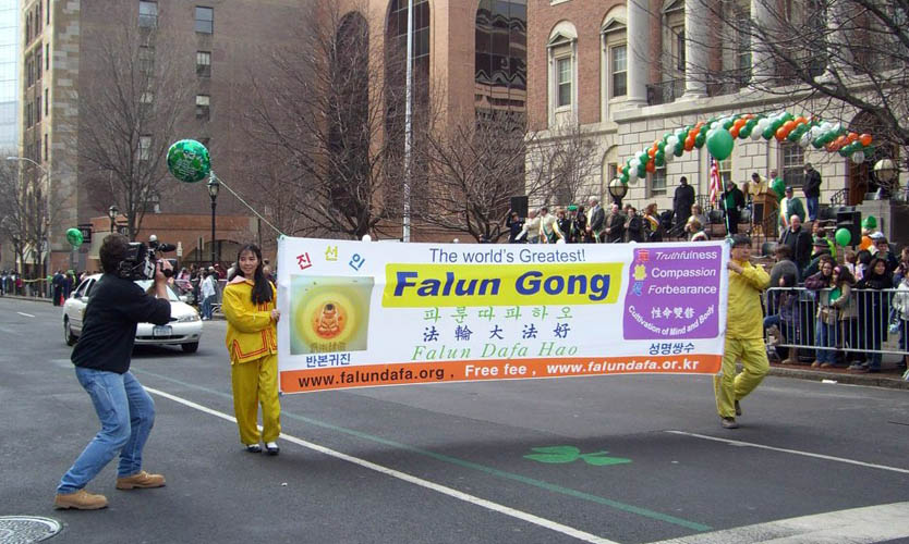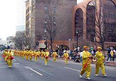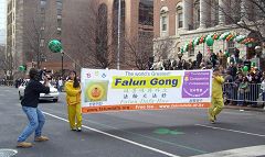 【明慧网二零零七年三月十一日】(明慧记者采菊纽约报道)二零零七年三月十日星期六中午,在纽约著名的威斯特郡首府白原镇上,到处可以看到穿着传统爱尔兰绿色裙装的男鼓手们,他们吹吹打打,忙于练声。今天是这个镇一年一度的大节日——第十届圣•派翠克大游行。约有七十多个团队参加了今年的游行,来自大纽约地区的法轮功队伍是唯一一个以华裔为主的团体。他们给白原镇带来了他们的传统项目:炼功队和腰鼓队,受到了威斯特郡民众的热烈欢迎。