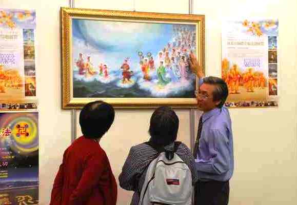 法轮功学员表示,美展展出的作品,是由一群来自不同背景、卓有成就的艺术家创作的,如雕塑家及画家张昆仑、章翠英、李园、陈肖平、董锡强等,这些艺术家通过修炼法轮大法,得到了身心的健康与精神的升华,进一步领悟了宇宙的真谛,找到了多年来探索生命与艺术的答案。他们通过遵循法轮大法所揭示的宇宙特性“真、善、忍”,把自己对生命的领悟、亲身的经历,通过艺术作品,向人们展示了一条返本归真的康庄大道。