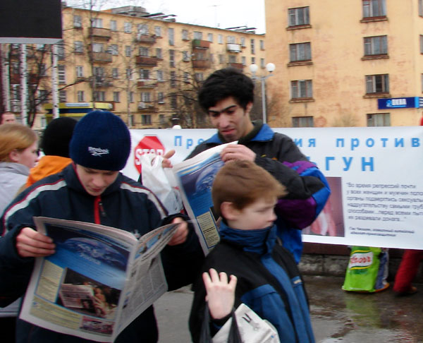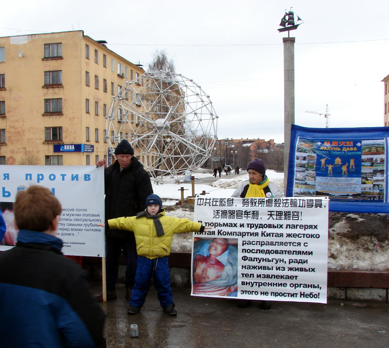 ![]() 法轮功学员在彼得罗扎沃茨克市街头抗议中共暴行 |